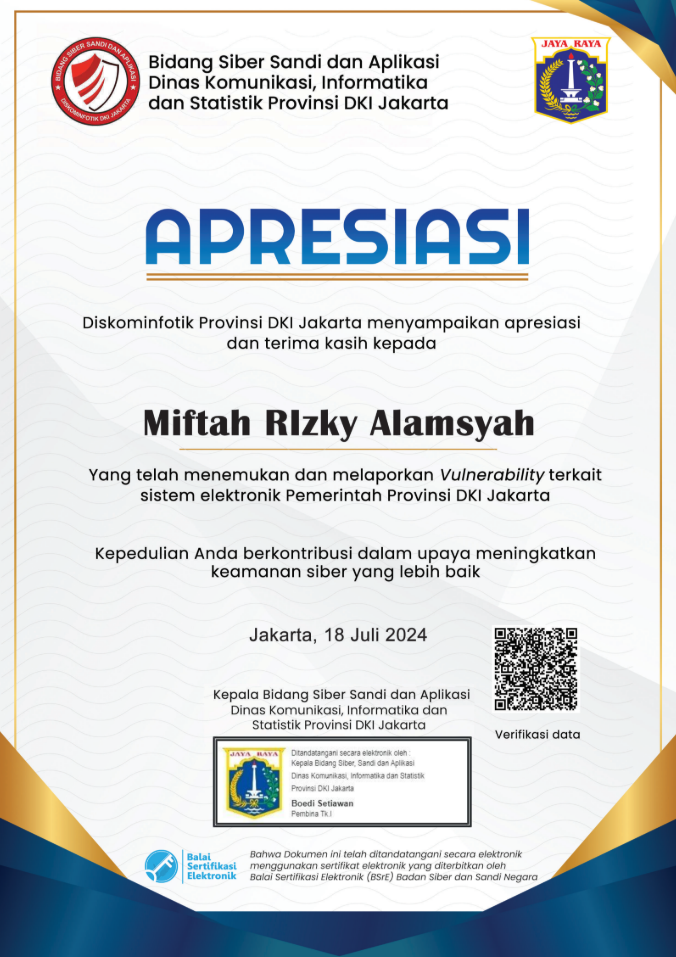 Certificate of Apreciation Jakarta
