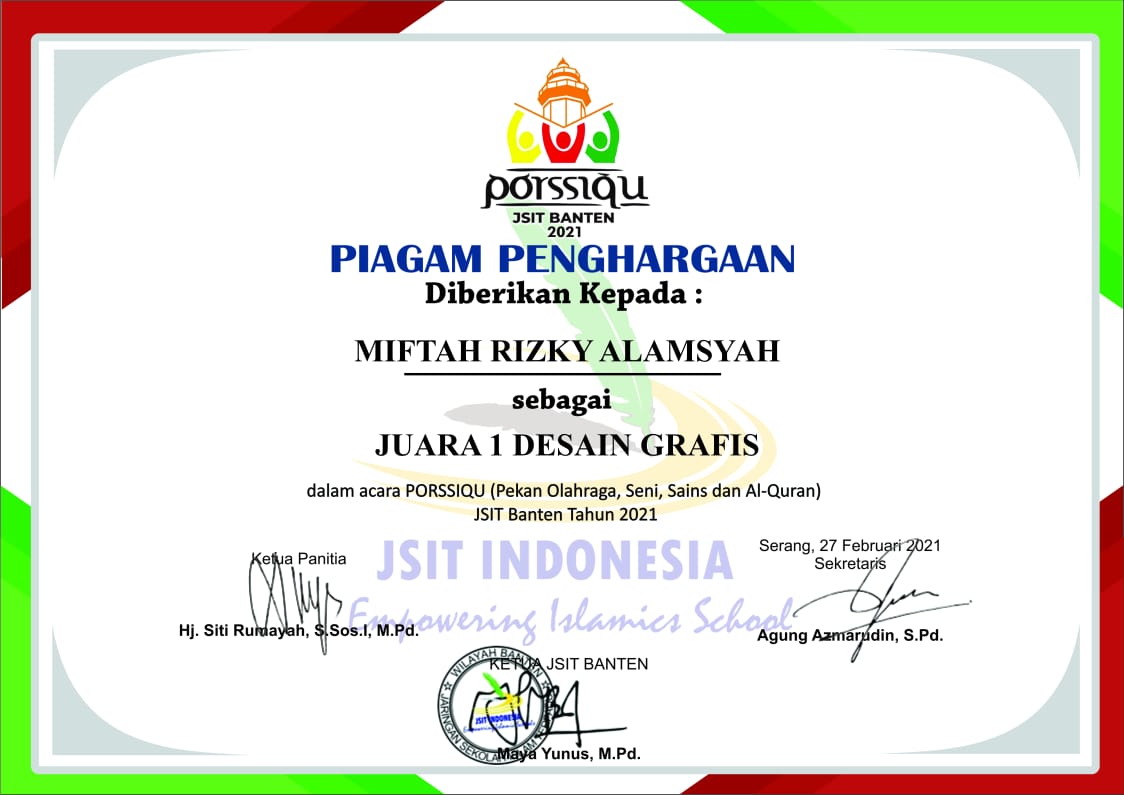 First place in the Graphic Design competition at the 2021 JSIT Banten Competition.