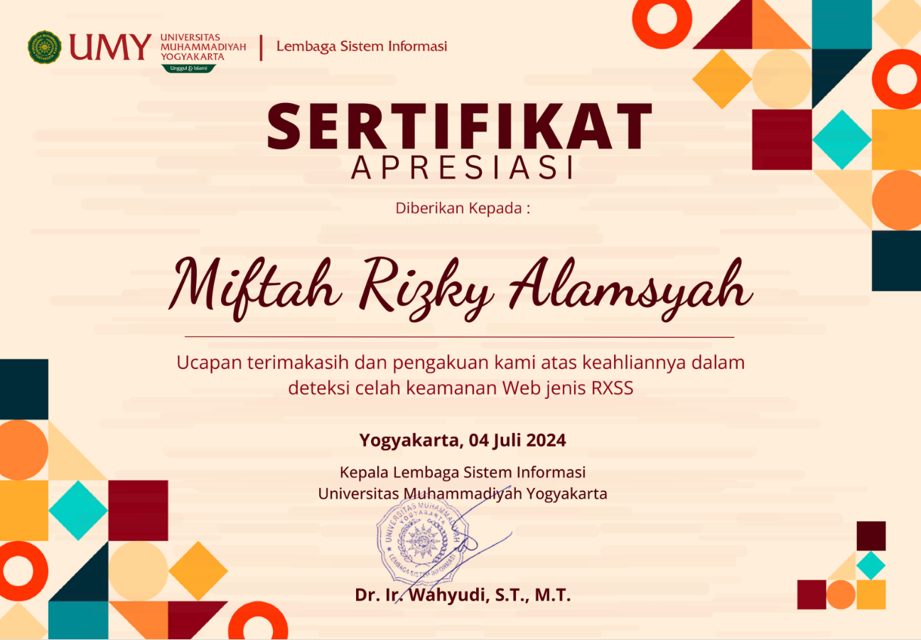 Certificate of Apreciation UMY